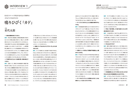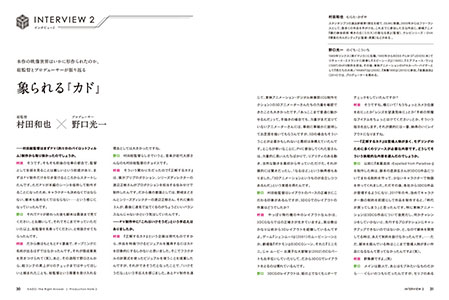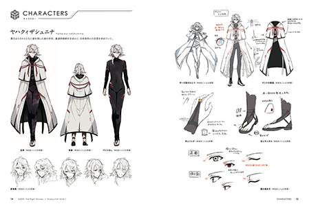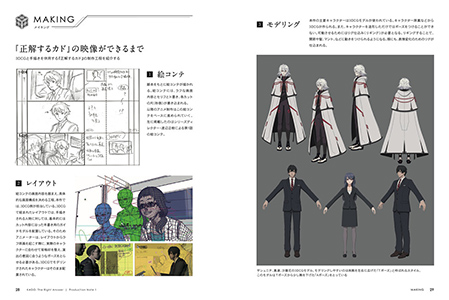 設定画(キャラクター、美術、異方のアイテム)、宣伝デザイン、インタビュー①(岩代太郎)、インタビュー②(総監督・村田和也×プロデューサー・野口光一)、